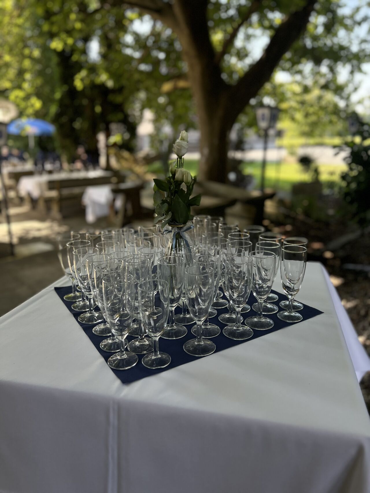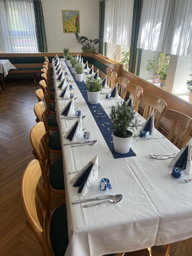 Da die Kosten der Tischwäsche explosionsartig gestiegen sind, müssen wir leider 3,00€ p. Person als Gedeck verlangen.